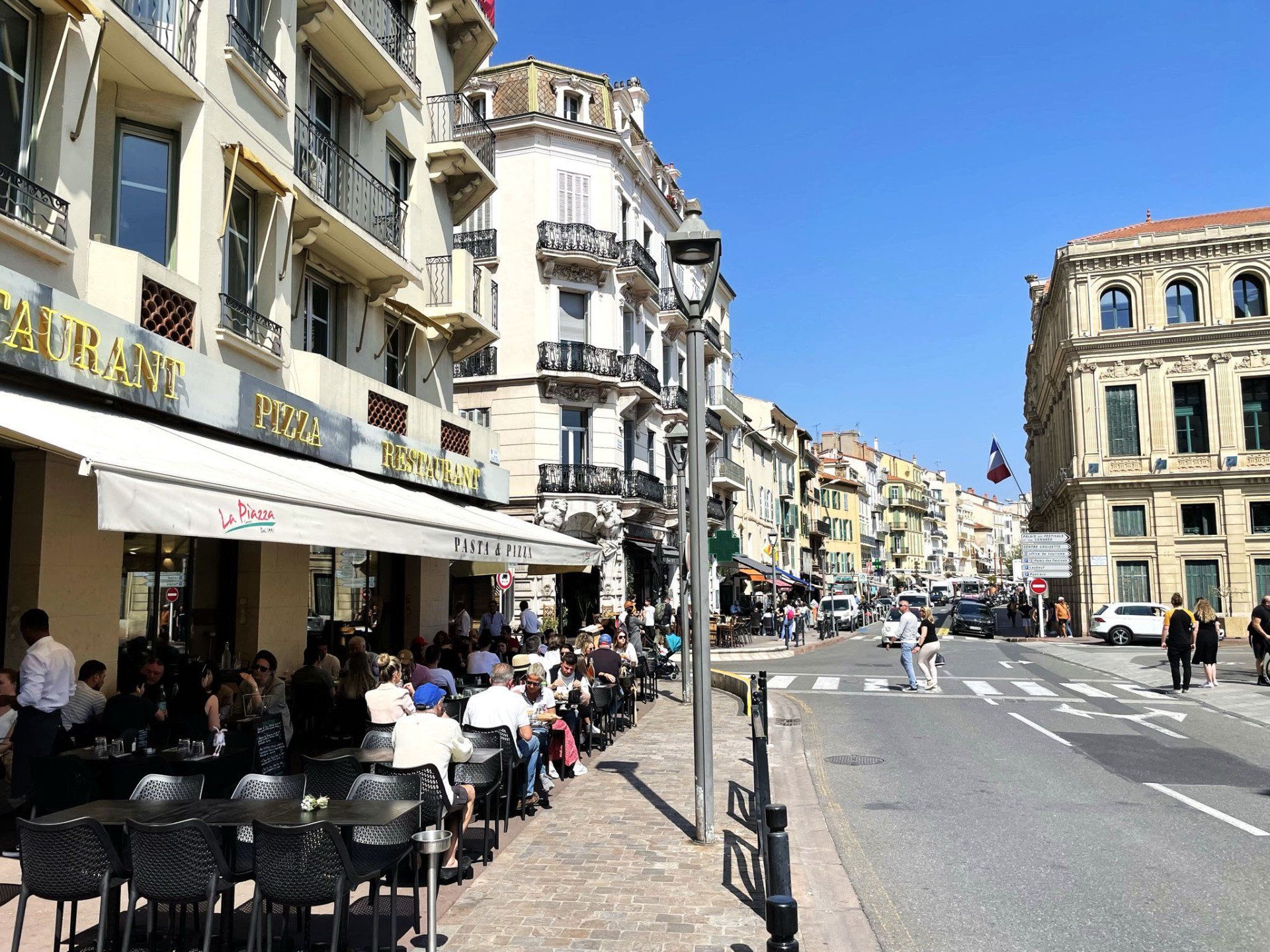 Die Strandpromenade der Côte d’Azur. Am Sandstrand kann man sowohl Baden und die Sonne genießen sowie in einem der unzähligen Beach-Restaurants hervorragend Essen & Trinken. Alles großen Luxusmarken haben hier ihre Flagshipstores. Der Spaziergang am Abend wird untermalt mit Musik & Tanz. Ein absolutes Muß und in 8 min zu erreichen.